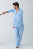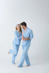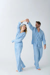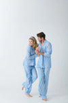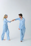 Elevate his PJ game this holiday season with this men's blue and white striped woven pajama set. The classic stripes evoke a sense of timeless style, perfect for cozy holiday evenings by the fire or festive winter mornings. With a comfortable top and adjustable tie-waist pants, this set ensures a perfect fit for relaxation and warmth. Designed to bring holiday cheer, it’s ideal for couples looking to match their cozy vibes. Snuggle up in this charming pajama set, and embrace the winter season with comfort, style, and a touch of festive charm!