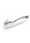 Made of hypoallergenic zinc alloy, its silver finish adds a sleek touch to the exciting sensation it provides. Known for its stimulating touch, this pinwheel intensifies sensations for those seeking a unique adventure. The easy-to-grip handle ensures precise control as you explore the tantalizing prickling feel on the skin. The cool, smooth surface of the zinc alloy creates a sensual contrast against the skin, enhancing every tickle of its pointy tips. Its single reel design provides concentrated sensation, making it ideal for pinpoint exploration. Take your intimate moments into uncharted territories of pleasure with this must-have tool for sensual exploration.