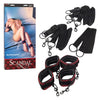 Sink into the sensations of total immobility and relinquish total control to your lover with the Scandal Bed Restraints. The lack of movement intensifies all the sensations you experience: As you wiggle and twist longingly against these restraints, your dominant’s whisper in your ear will feel even more breathy and full of desire. Their breath will feel hotter and more radiant against your skin. The brush of their skin against yours will feel even more electrifying than usual when you can’t reach out with a touch of your own. Restraints are an amazing way to increase trust, deepen emotional connection, and explore each other’s desires in a whole new way. The wrist and ankle cuffs are totally adjustable and feature a soft and plushy interior that will keep you comfy…no matter how hard you strain against them. The outside of the cuffs is covered in gorgeous red brocade fabric that you’ll shiver in anticipation to see strapped around your wrists. Your partner will love the way your body looks with your legs and arms spread wide in the most vulnerable and enticing of positions. The tethers can be used in a variety of positions: Try them wrapped up from under the mattress or wrapped around a bedpost to keep you tethered firmly to the bed and spread out for your lover’s enjoyment. The set even includes an extension tether, so you’ll be held firmly in place on any size bed.